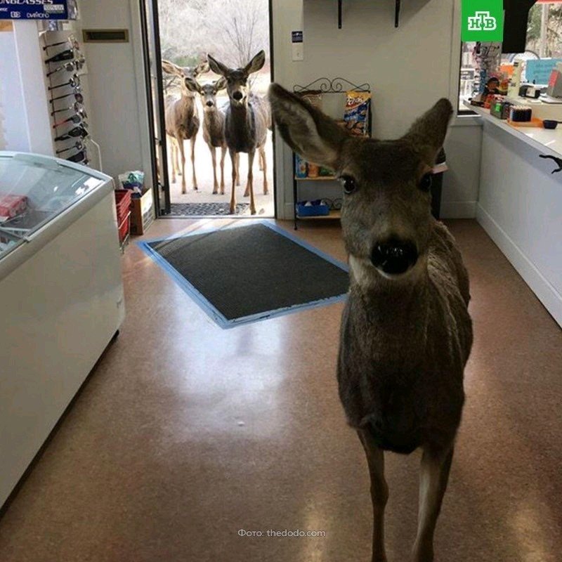 Amerika’nın Colorado eyaletinde dişi bir geyik markete girmiş ve market sahibi de fıstıklı çikolatak vermiş. Ardından dişi geyiği market dışına çıkarmış. Yaklaşık 1 saat sonra tüm ailecek geri gelmişler 🙂